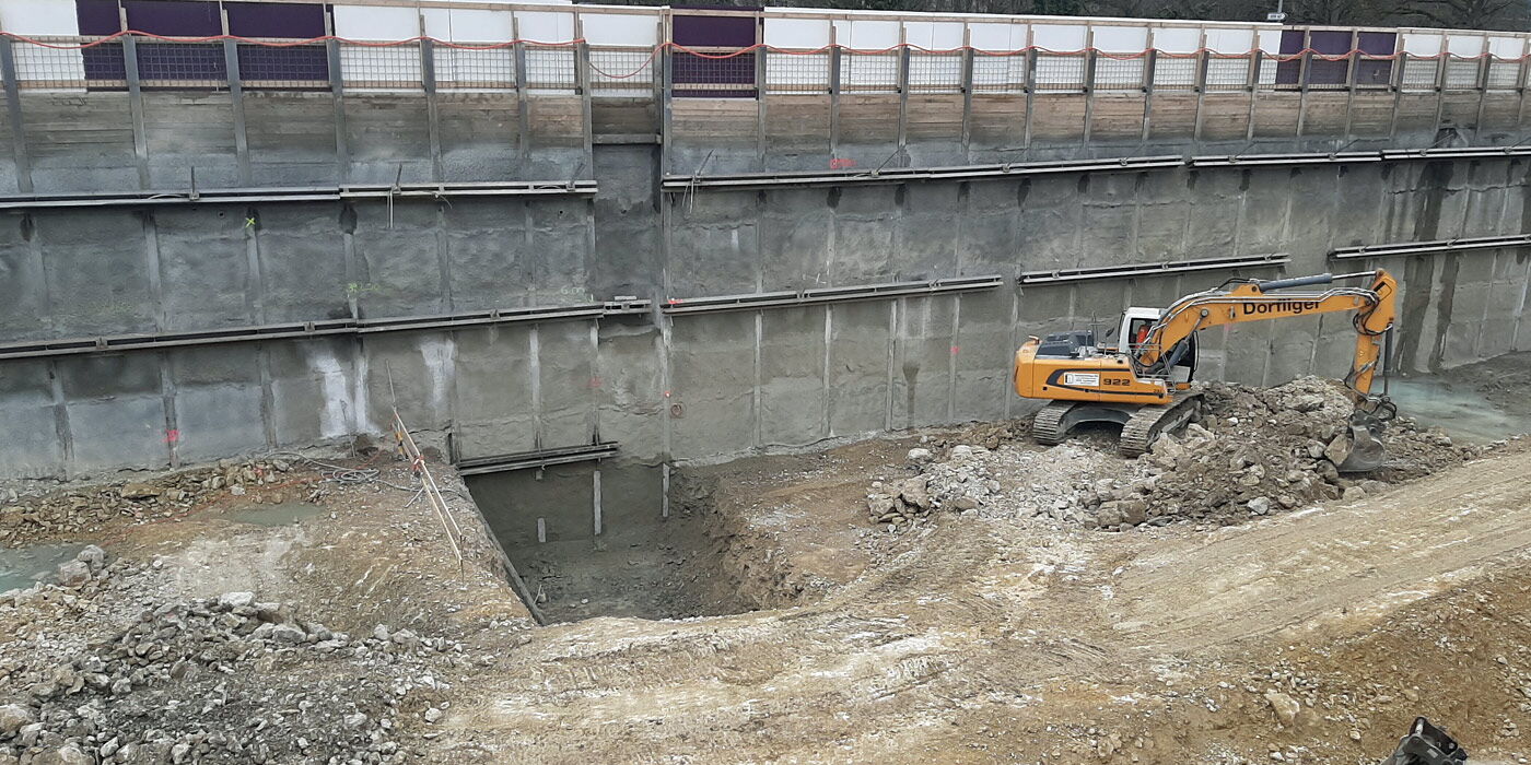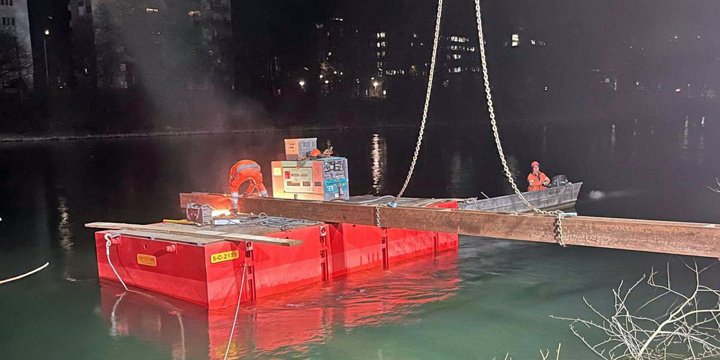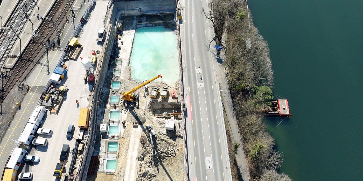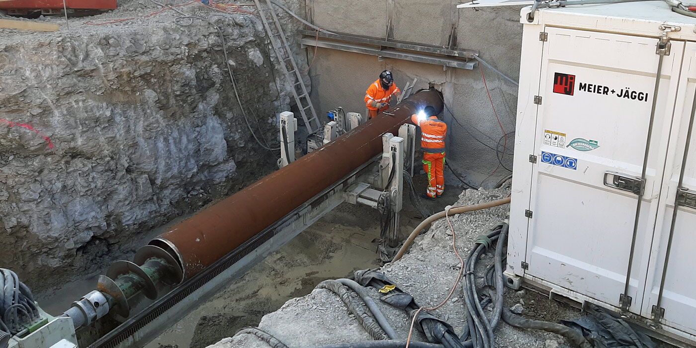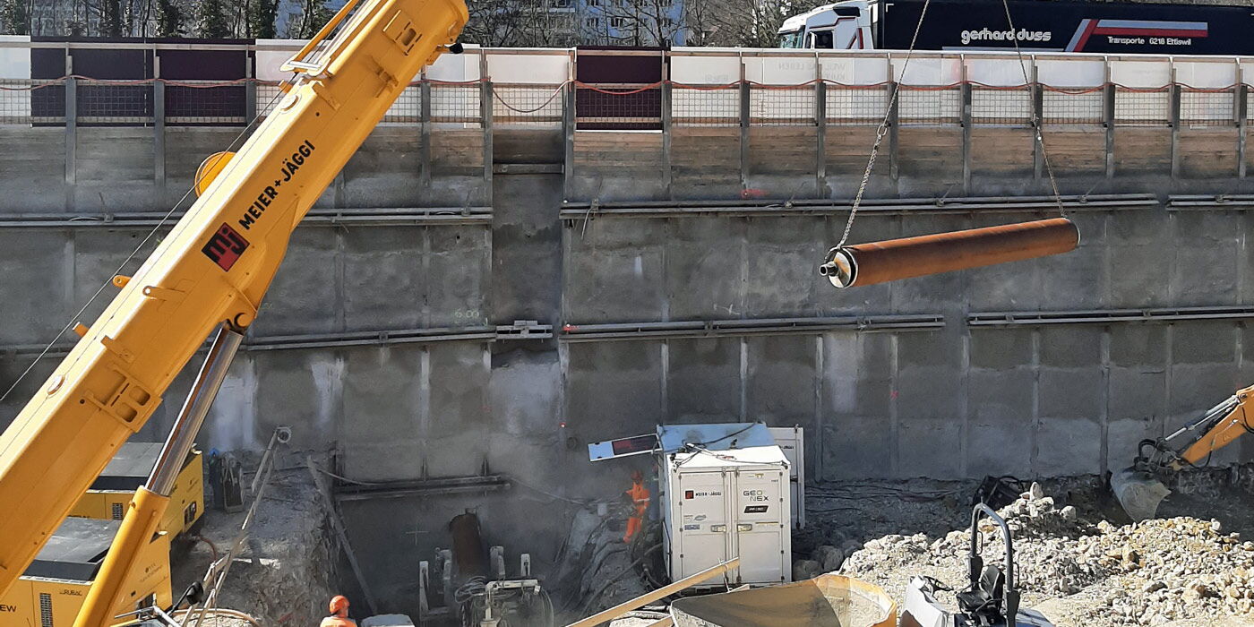 | Projektbeschreibung | Im Rahmen der Überbauung des SBB-Areals in Olten wird eine neue Flusswasserfassung in der Aare realisiert. Staubli, Kurath & Partner AG übernimmt die ingenieurtechnische Planung und Begleitung des Projekts. Die Wasserfassung dient der Heizung und Kühlung der zukünftigen Überbauung. Der Vortrieb der beiden Leitungen erfolgte mittels Hammerbohrverfahren von der landseitigen Startgrube aus, welche sich innerhalb der grösseren Baugrube der zukünftigen Überbauung befand. Die Erstellung der Zielgrube innerhalb der Aare fand während mehreren Nachteinsätzen statt. In die bereits erstellten Vortriebsrohre werden anschliessend die beiden Wasserleitungen eingezogen und flussseitig wird das Fassungs- und Rückgabebauwerk erstellt. |