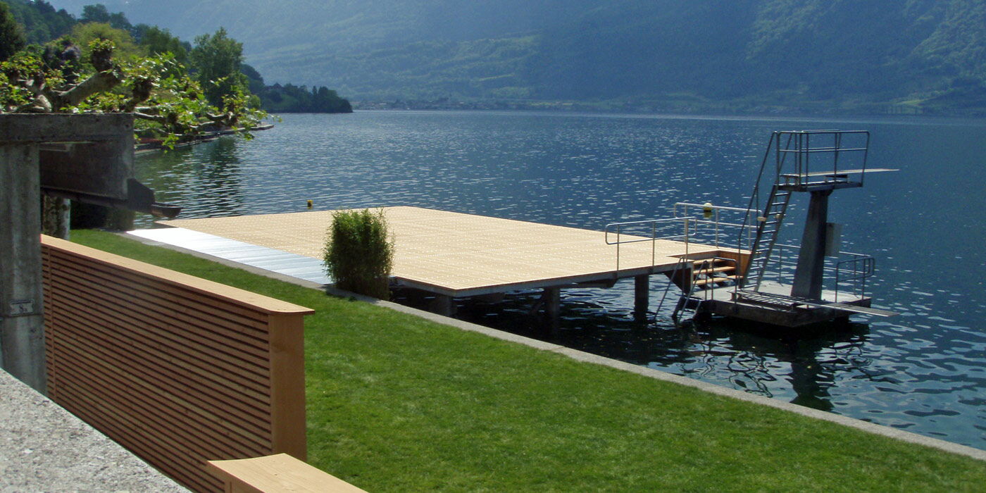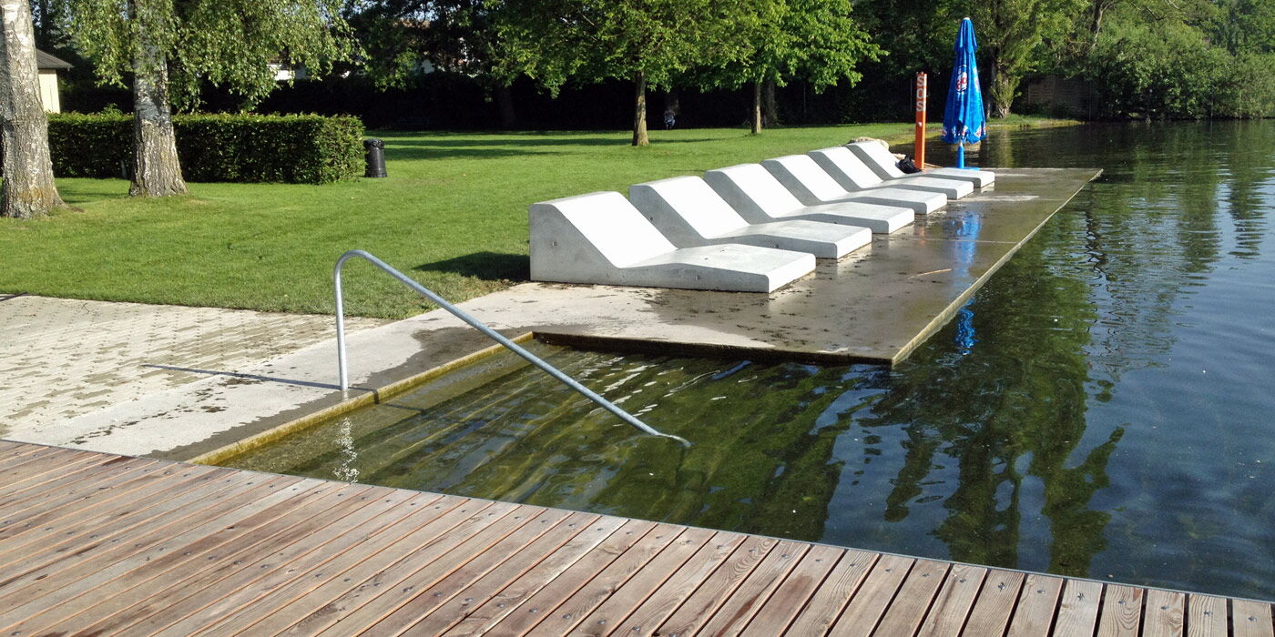 | Projektbeschrieb: | Erweiterung der bestehenden Badeanlage, Vergrösserung der Liegefläche durch eine neue ca. 150 m2 grosse Liegeplattform aus feuerverzinktem Stahl und Douglasie. |