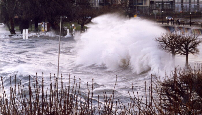 Die Bilder zeigen eindrückliche Wellen die bei Orkanstürmen auftreten können. Bei der Dimensionierung unserer Bauwerke am und im Wasser spielen diese dynamische Kräfte eine massgebende Grösse.