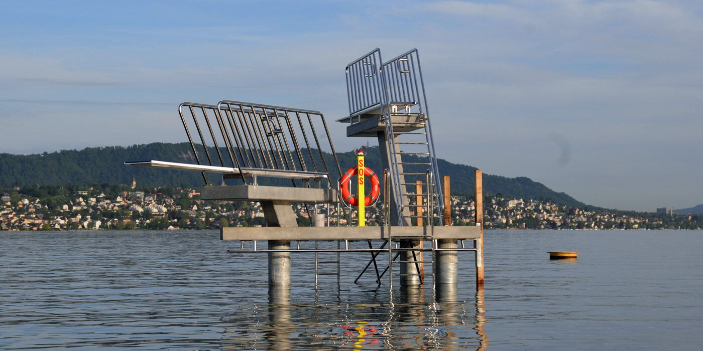| Projektbeschrieb: | Bau eines neuen Sprungturms mit einem 1.5 m und einem 3 m Sprungbrett im Zürichsee |