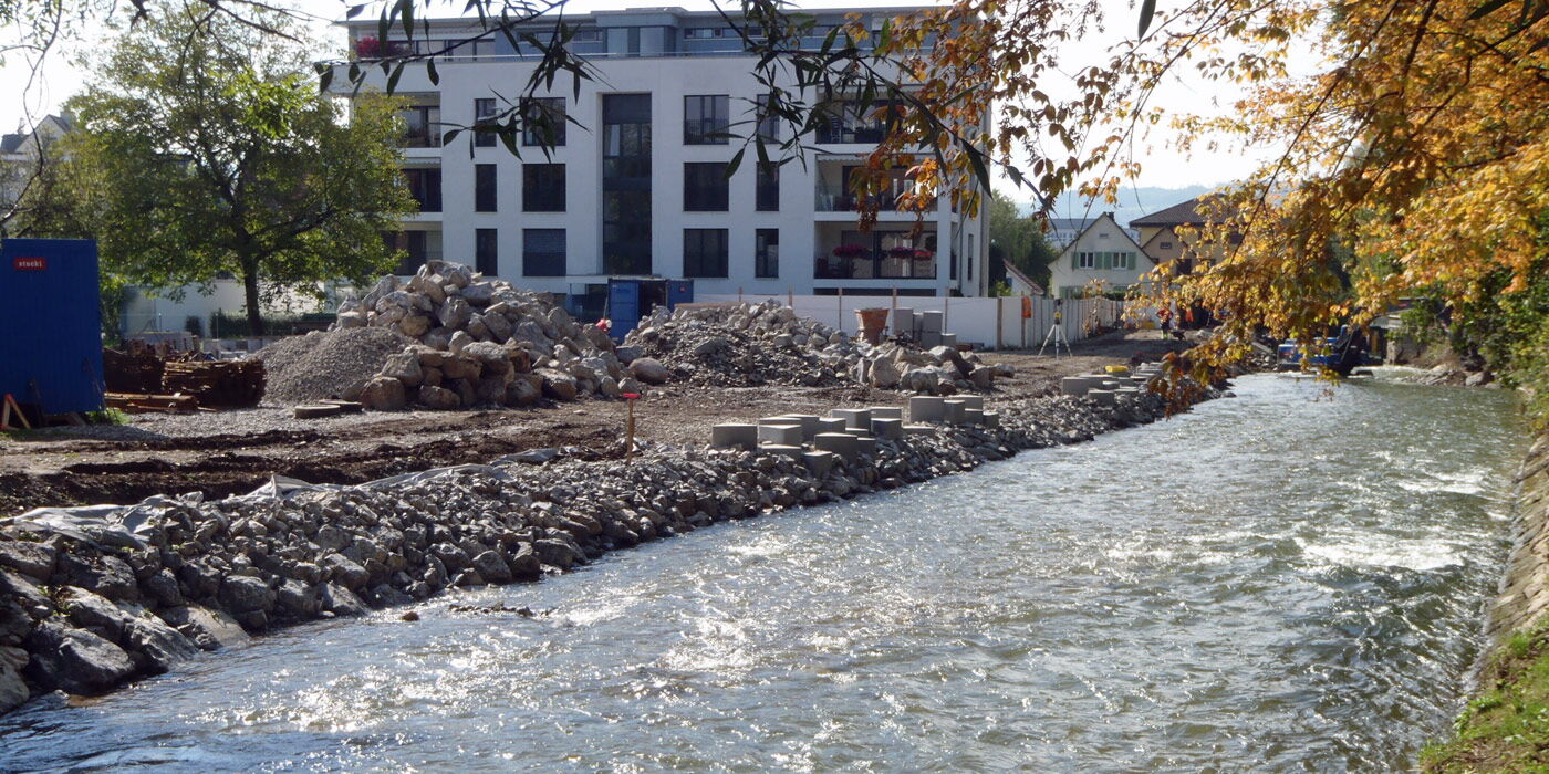 | Projektbeschrieb: | Gewässerausbau auf einer Strecke von ca. 260 m, Aufwertung des Gewässerraumes für die aquatischen Lebewesen, Sohlenabsenkung, Neugestaltung Uferweg |